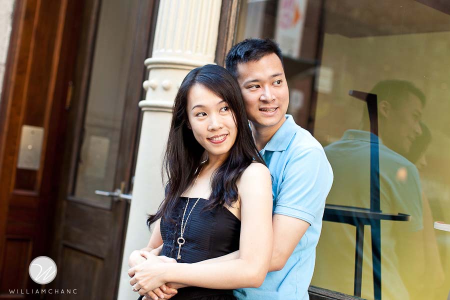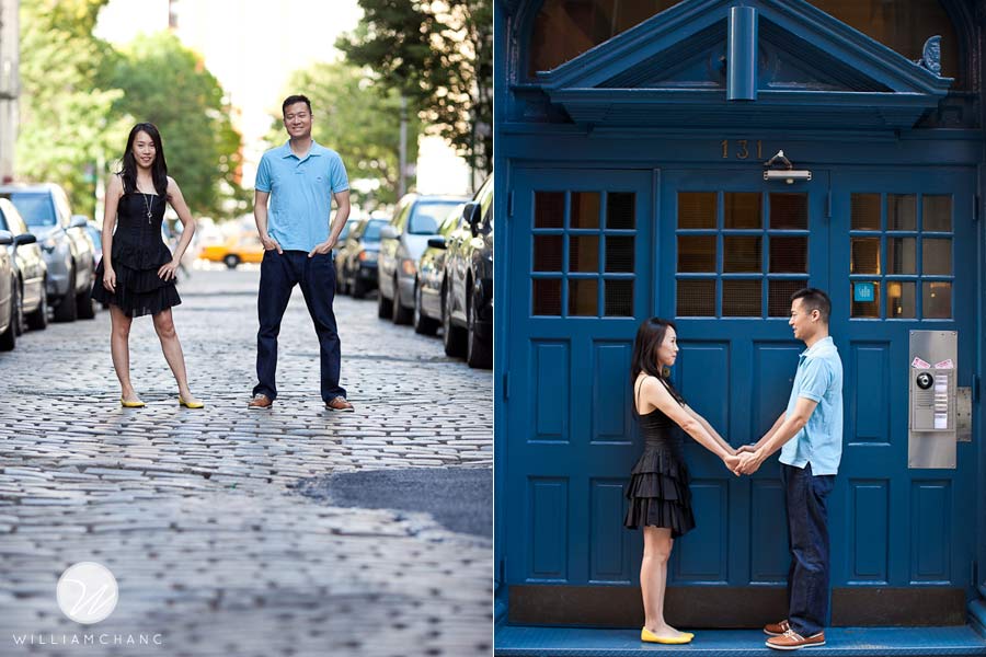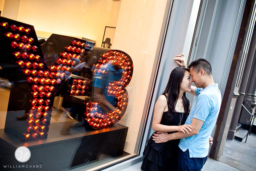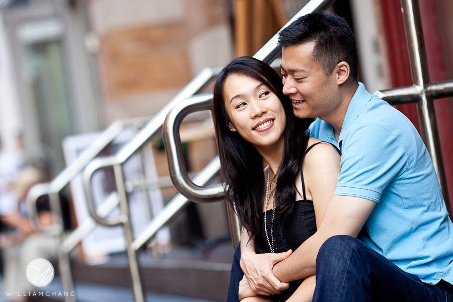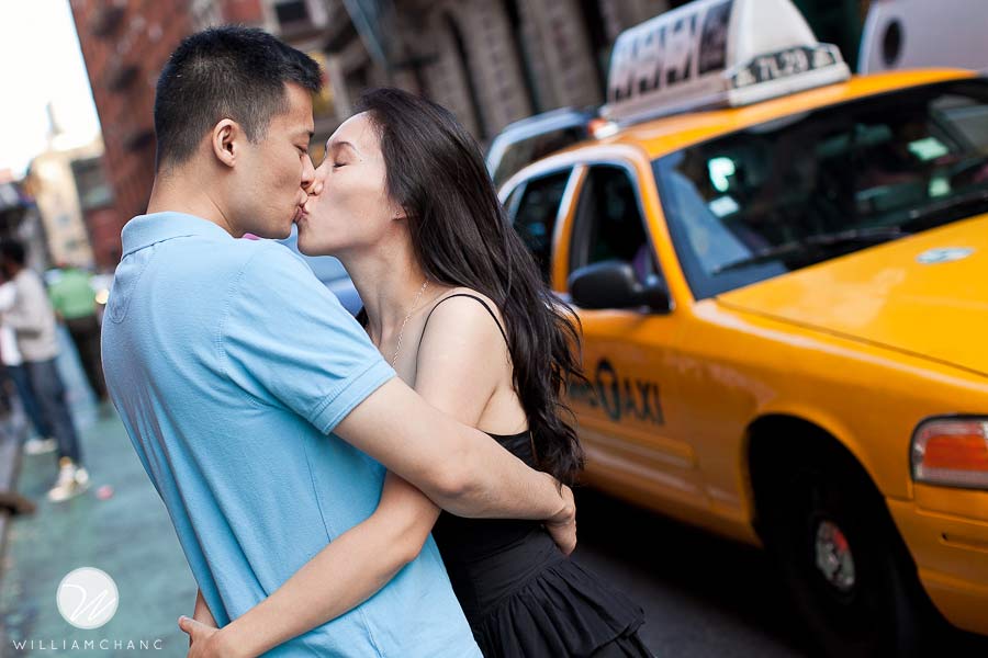 New York City is such a treat for photographers. There is always something interesting happening everywhere you turn. Angel and Myron wanted the classic New York City feel for their photo shoot. As such, they opted for Soho! With all the many shops, artists and cobble stone streets, it’s hard to believe Soho was once called an industrial wasteland. And being the day after Fashion Night Out 2010, you can imagine the tons of people and energy vibes all around the neighborhood. All shopping aside, it was a great setting for a photo shoot. We strolled around the streets, admired all the new shops that opened up in the area, and took advantage of all the beautiful architecture and structures nearby. The weather was beautiful and sunny after the cool days that we had in the last week, which was perfect for this city-loving couple. Angel and Myron were so excited about the NYC vibe, we ended our shoot with a couple of good ol’ yellow taxi cabs.
